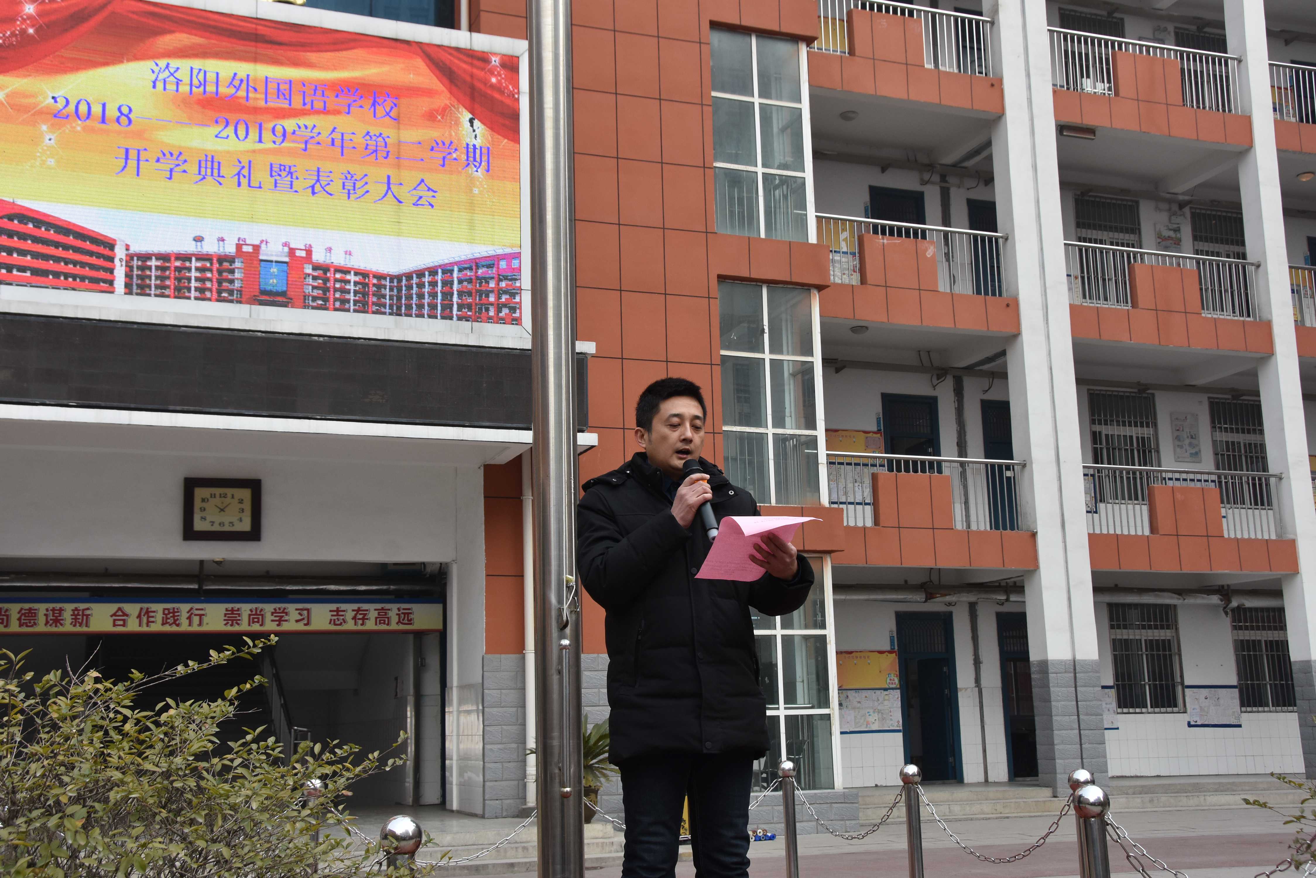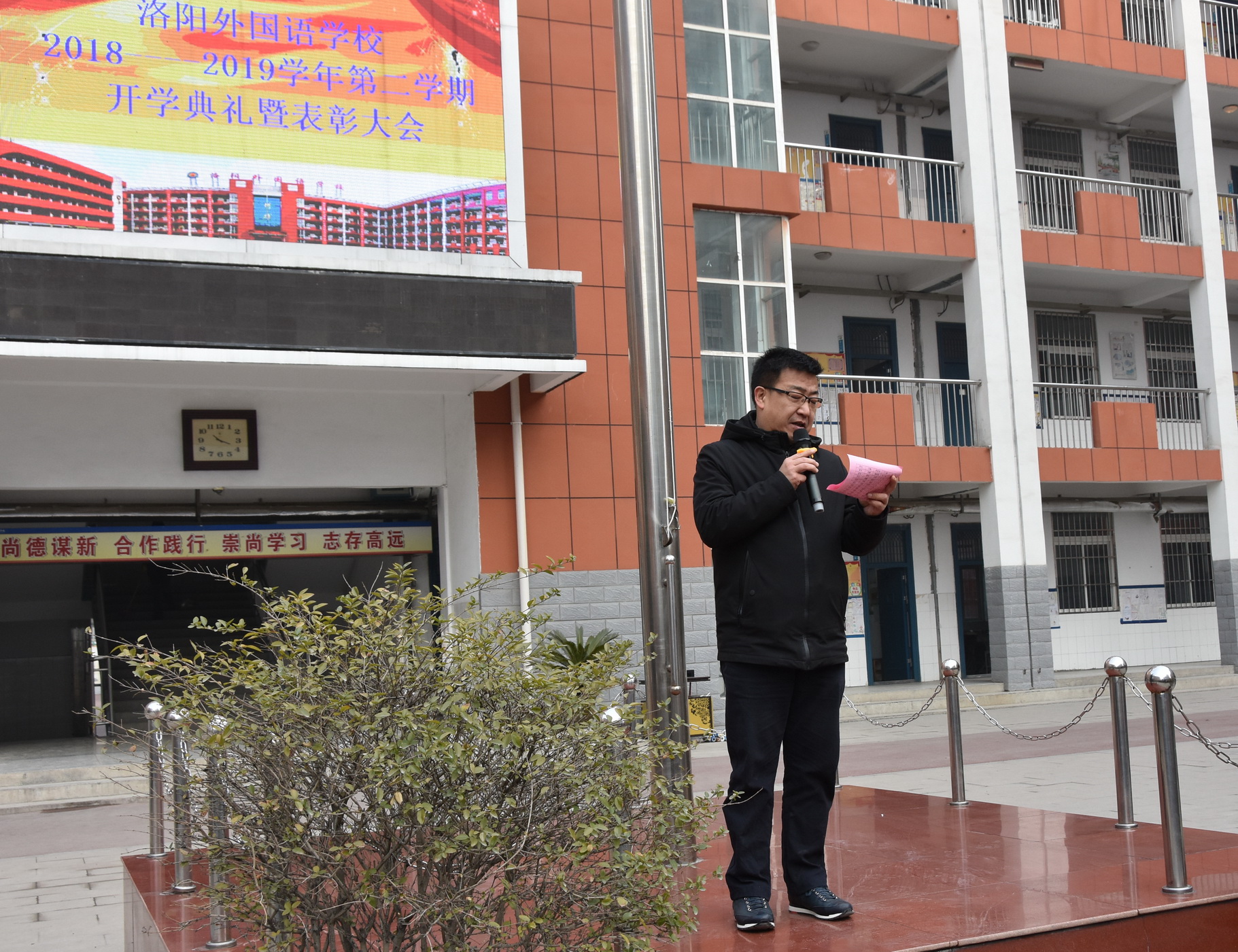 春回大地,万象更新。度过愉快的寒假,师生返回归来,2月20日上午,在嘹亮的国歌声中,洛外东校区隆重举行2018—2019学年第二学期开学典礼。开学典礼由吴进洲主任主持。
