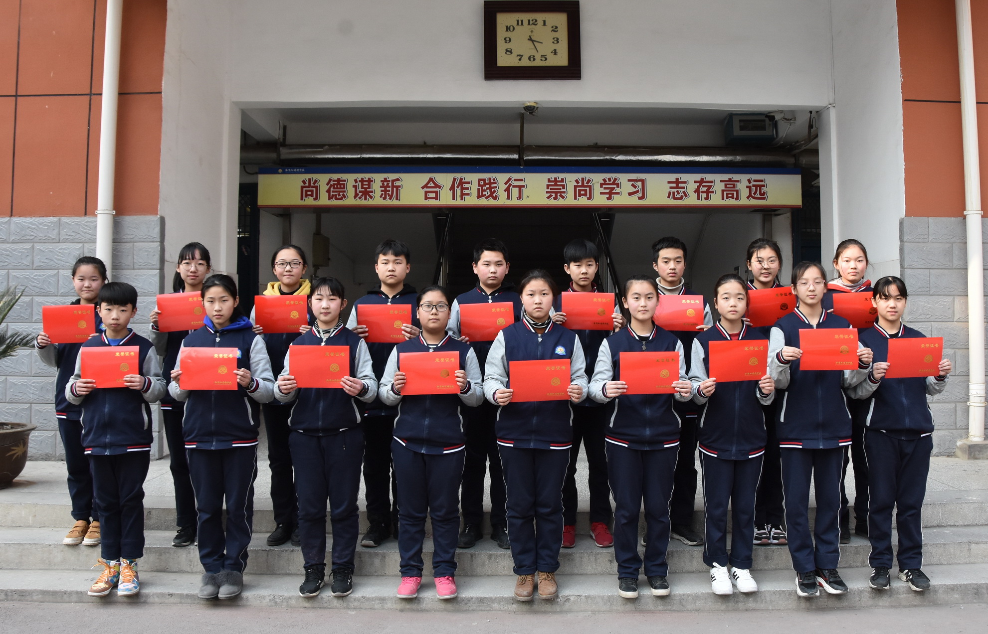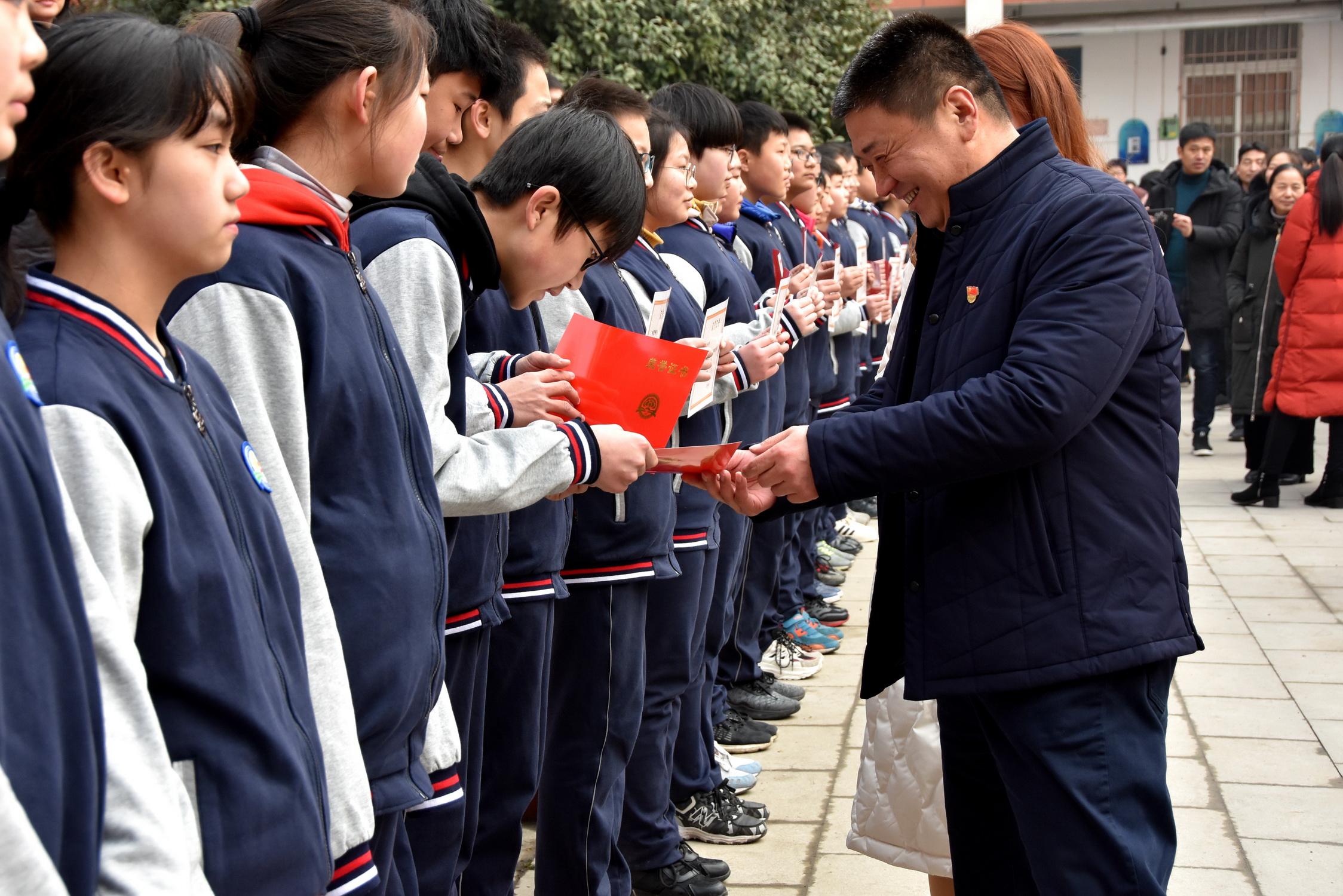 胡伟民副校长、韩昱主任、袁峰主任,先后宣布了2018-2019学年第一学期三好标兵、优秀班干、希望之星、学习标兵、先进班集体获奖名单,齐校长现场为获奖同学和班级颁奖。