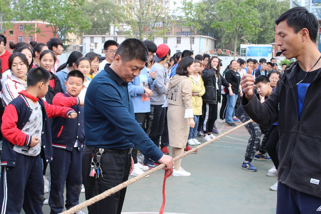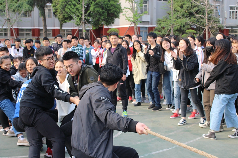 为丰富高三学生的课余生活,进一步增强班级凝聚力和向心力,2019年4月19日下午5点,我校在学校操场举行了高三年级拔河比赛。 本次比赛以班级为单位,按照分组的方式决出前四名。参加比赛的同学们奋力拼搏,各班啦啦队员也毫不示弱,加油助威,赛场上四处飞扬着青春的力量。整个比赛过程紧张、激烈、有序,充分展现出了洛外高三学子斗志昂扬,团结协作的精神面貌。 本次比赛,既进一步培养了学生团结协作、拼搏进取的精神,还有利于引导学生加强体育锻炼,增强自身体质,也有效调节了高三紧张学习生活。