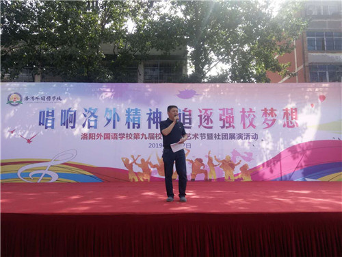为了践行 “精彩教育,幸福人生”办学理念,丰富学生文化生活,展示洛外艺术教育的丰硕成果;唱响洛外精神,引领学生强校逐梦,励志前行,经过精心筹备,2019517日,洛外(东校区)第9届校园文化艺术节暨社团文艺展演活动如期举行。校党委书记、校长齐振富同志,校党委委员、副校长胡伟民同志出席艺术节活动。