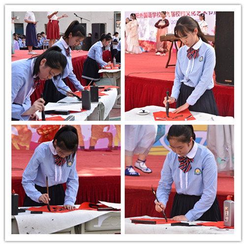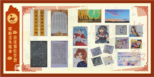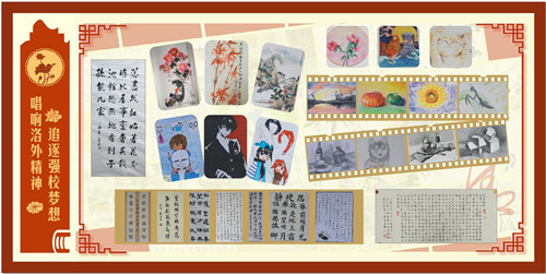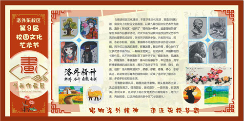 ●本届校园文化艺术节包括社团文艺展演和优秀书画作品展评两部分活动。同学们精心创作的书画作品,从不同侧面展示了同学们在洛外精神浸润下,修德、修能、修身、修心,志存高远,笃学拼搏攀高峰,砥砺奋进写青春的精神风貌。