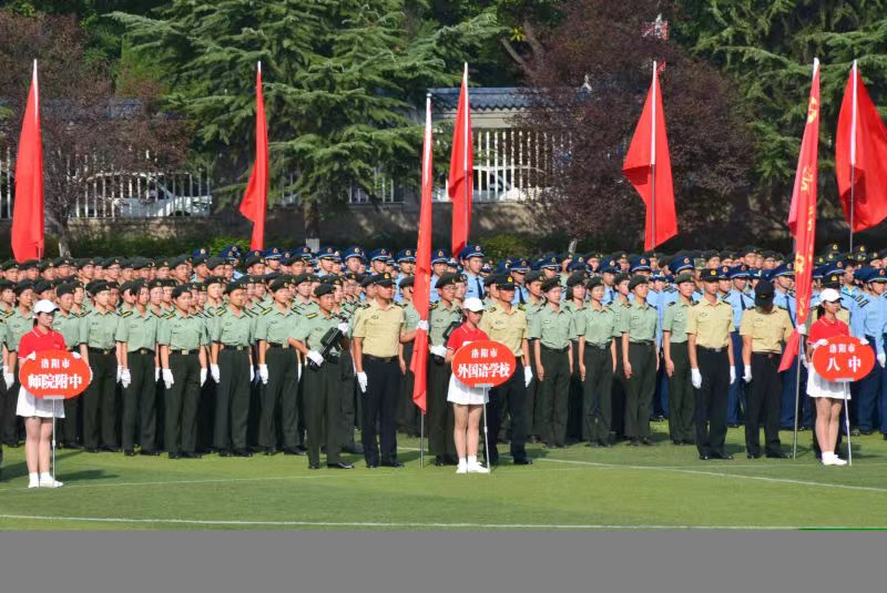 2019年8月1日,洛阳外国语学校迎来了600多名高一新生,8月13日学校隆重举行2019级高一新生军训开营仪式。同学们满怀信心,决心以饱满的热情、顽强的意志圆满完成军训任务。