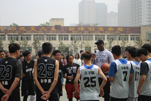 克里夫·摩根同时也是美国篮球青少年推广中心的主教练,此行的主要目的就是推动中美两国青少年间的篮球文化交流。我校是全国第一批篮球特色学校、河南省篮球传统项目学校,克里夫·摩根教练将对我校篮球队的学生和教职工篮球队进行训练、比赛和战术指导。在学校篮球场,克里夫·摩根和他的助理教练员Milani Malik首先指导我校篮球队的学生们进行科学的训练,包括体能训练、步伐训练、球性训练等内容。新颖的训练内容、先进的训练理念以及教练员注重细节、富有激情的训练态度带动着每个学生的积极性,使老师和同学们受益匪浅,同时也赢得了老师和同学们的阵阵掌声。在经历一番训练和学习后,校篮球队的学生分成两队进行了一场对抗赛,在操场上体育课的同学们为他们呐喊助威,教练员临场指导,并利用中场暂停进行点评和指导,激发了球员们的热情和斗志,比赛结束后教练员首先对同学们的表现给予了肯定和表扬,其次对不足之处进行了总结,同时激励同学们要有自信,投篮不中时不要灰心,而是立马要做好下一次防守,球场上10%的表现是取决于你怎样去打球,而另外90%则取决于你想怎样去打球。