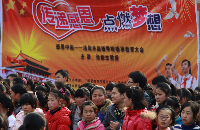 3月16日下午,在洛阳外国语学校东校区举行了一场别开生面的报告会,张新生教授的感恩演讲,深深触动了人们内心的情感,让现场的师生、家长无不动容,学生们哭了,爸爸妈妈哭了,老师们哭了,满头白发的爷爷奶奶也泪流满面,这是发自人们内心的真情宣泄。
