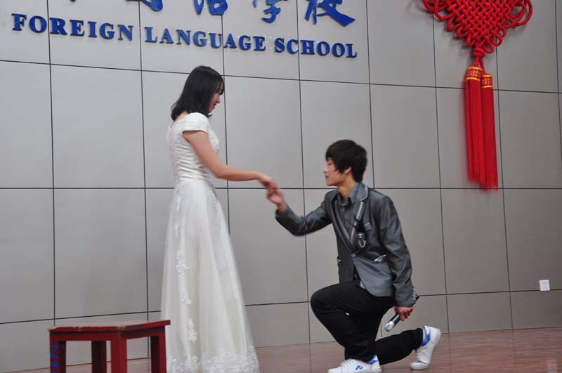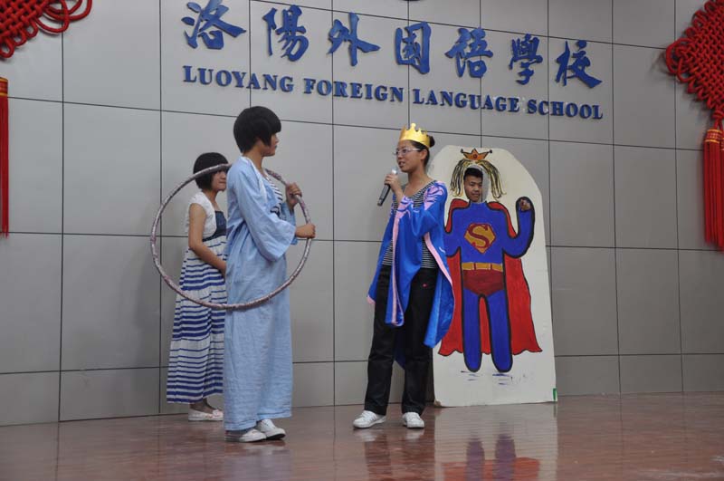 2012年5月10日星期四,我校第二届艺术文化节的“英语课本剧展演”、“英语演讲比赛”如期举行,魏校长致开幕词。《荆轲刺秦》、《白雪公主》等剧目让学生们演绎得精彩纷呈,赢得了大家的整整掌声;一些创意十足的桥段也会让大家忍俊不禁,同学们估计不会想到:荆轲的霹雳舞其实跳的不错。参加英语演讲比赛同学的标准发音更是凸显了我校的外语特色。