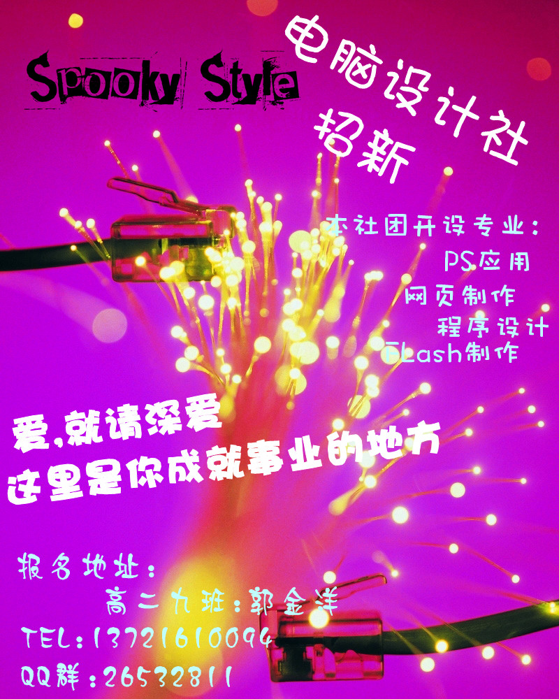近日,学校各个学生社团纷纷招新。 校园社团是外国语学校的学生管理特色,学生社团在校团委的组织下,各个社团利用业余时间,发挥同学们的特长,张扬学生个性,丰富学生业余文化生活,培养学生们的兴趣,开发学生们的潜能,使学生们体验成功,自我表现、综合素质和能力得到培养,为将来学生们走向社会打下了坚实的基础。 目前,正是初三、高三学生毕业的时候,漫长的暑假即将到来,各个社团也希望假期里在充分休整的前提下,复习巩固文化课知识,培养自己的特长,加强同学之间的交流,开展有益的社团活动,使自己的暑假生活丰富多彩。各个社团纷纷贴出招新告示,吸引兴趣相同的同学加入,为新的学期社团能有更多的新同伴、更多精彩的节目积极准备。 欢迎有兴趣的同学加入电脑社团、魔术社团、声乐社团、器乐社团、街舞社团!