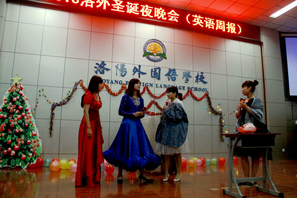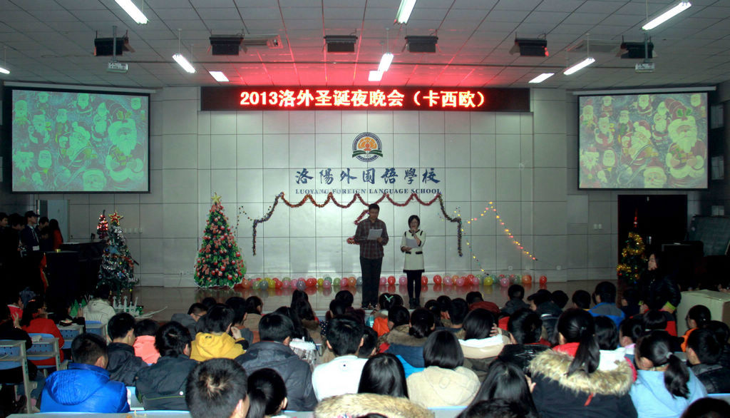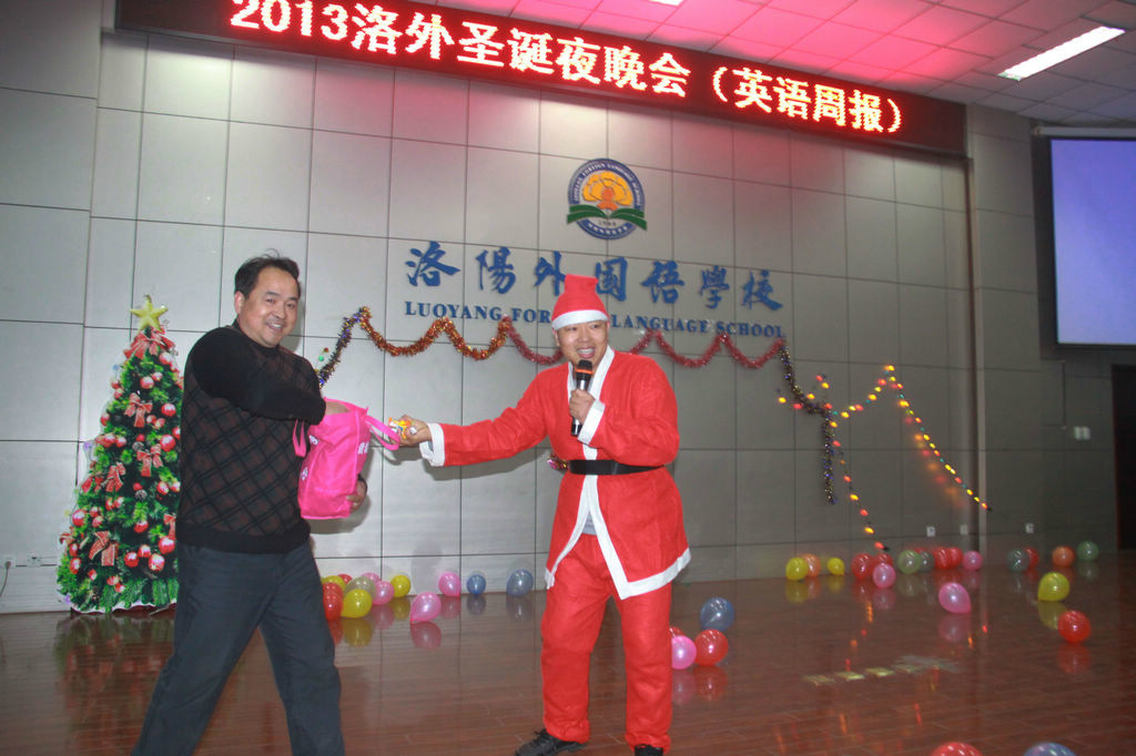 平安之夜,洛阳外国语学校高一外语组教师,组织学生自编自演一台热闹而温馨的圣诞晚会,歌舞、话剧、小品节目异彩纷呈,整场晚会从报幕到演唱、对白采用了全英语的形式,学生青春阳光、激情洋溢的表演,给大家带来了欢声笑语、快乐心情,也体现了学校老师辛勤的教育成果,反映了学校突出的外语特色,段校长、刘校长等学校领导亲自到场观赏了整场演出,晚会最后,孩子们手捧红烛,在圣诞颂歌《平安夜》优美的和声中落下帷幕。一个祥和、温馨的夜晚,在欢快的歌舞声中愉快的度过。 神说:所谓幸福,是有一颗感恩的心,一个健康的身体,一份称心的工作,一位深爱你的人,一帮信赖的朋友,你会拥有这一切!祝大家:圣诞快乐!