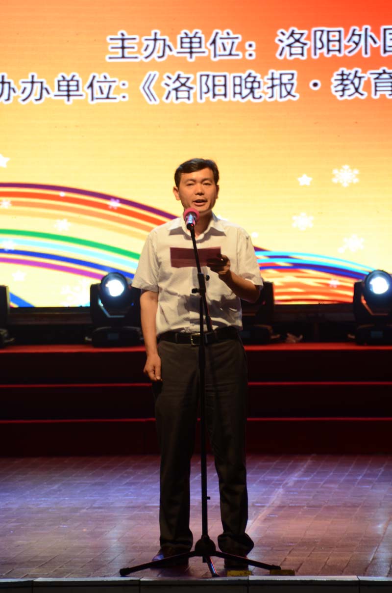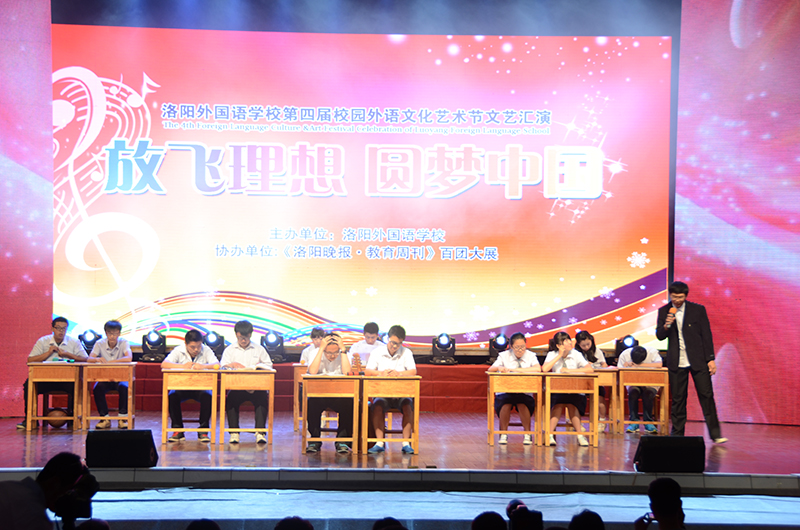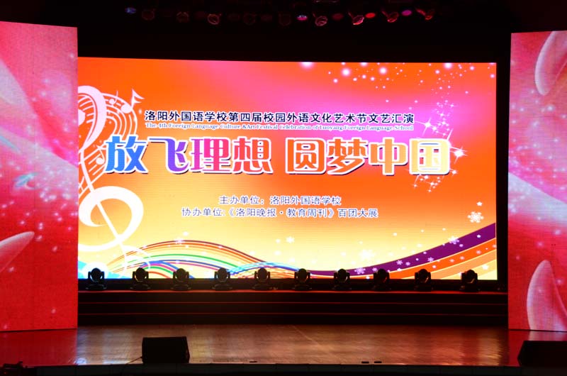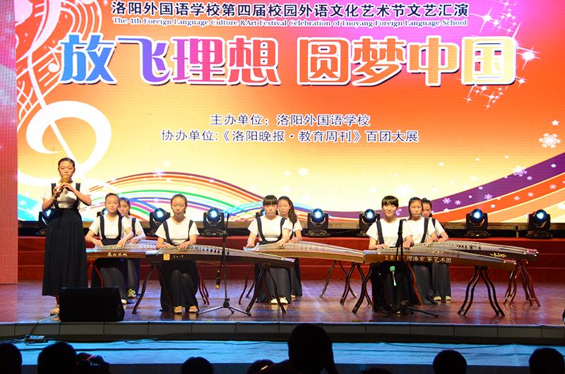 2014年5月30日上午9点整,洛阳外国语学校师生在工人俱乐部举行了以“放飞理想,圆梦中国”为主题的第四届校园外语文化艺术节文艺汇演。洛阳市教育局牛宏亮副局长、体卫站陈钢站长莅临会场观看演出,洛阳晚报教育周刊、东方今报、太阳鸟摄影网的朋友们也认真观看了表演,外国语学校段华松校长等校领导及全体师生对此次活动大力支持。校舞蹈社团、汉服社团、声乐社团、器乐社团及初、高中部各班级为大家奉献了一场艺术盛宴;校电脑社团甘当幕后英雄,保证了演出的音效;校摄影社团记录了同学们精彩的演出瞬间。
