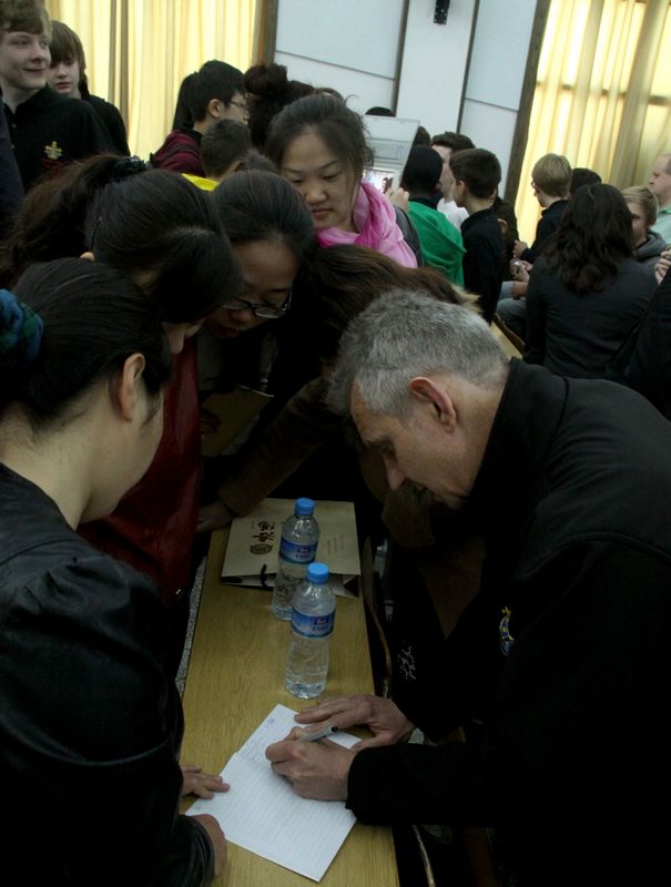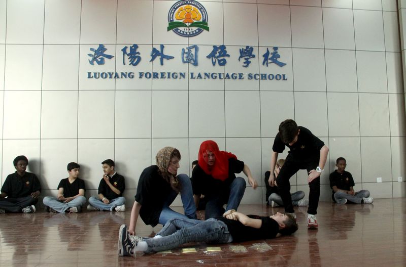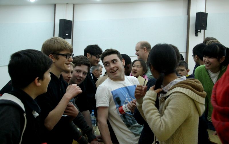 2013年4月7号,英国三一学校来我校访问。魏校长代表学校赠送极具洛阳特色的唐三彩牡丹花盘给三一学校的老师们。尽管有东西方文化的差异,但年轻人在一起还是有很多共同的话题和娱乐活动。随着我校对外交流活动的不断开展,同学们开阔了视野,提高了和国外同龄人交往的能力。