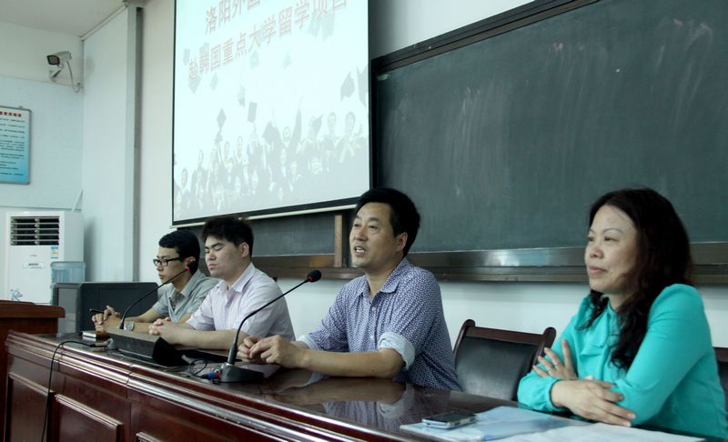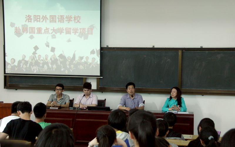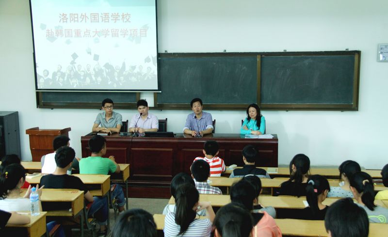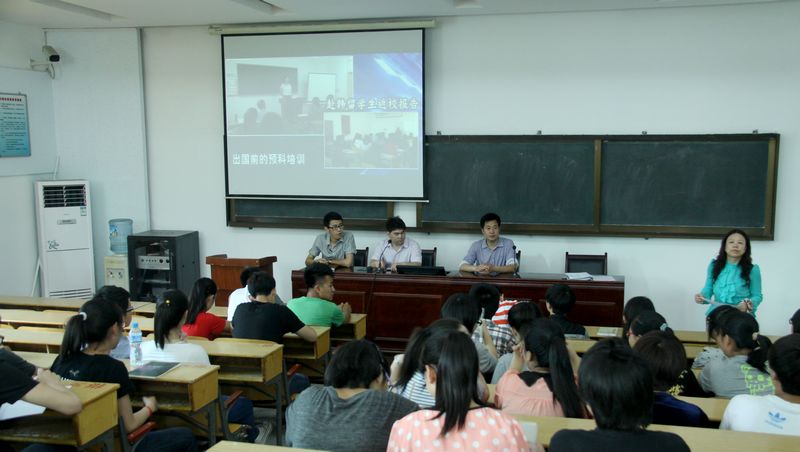 2013年5月13日,魏成民副校长和秦祥卿主任为同学们介绍赴韩国重点大学留学项目,我校韩语老师和留学机构代表共同出席。