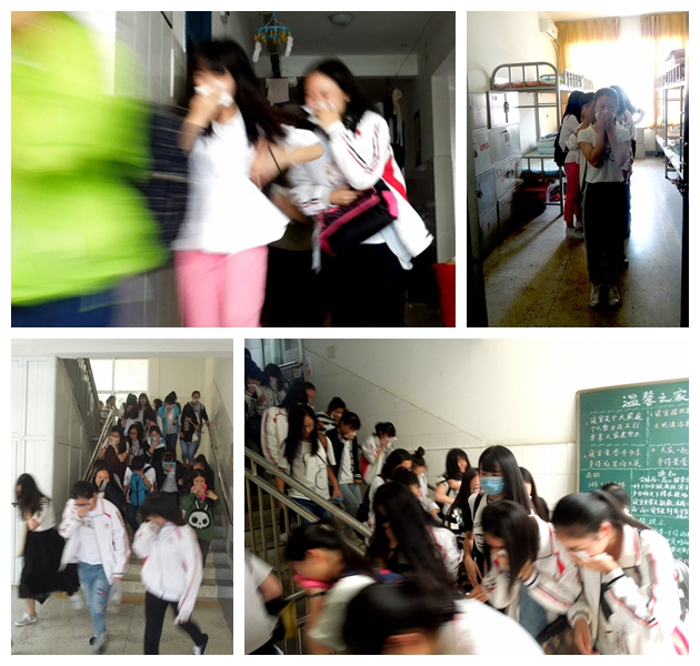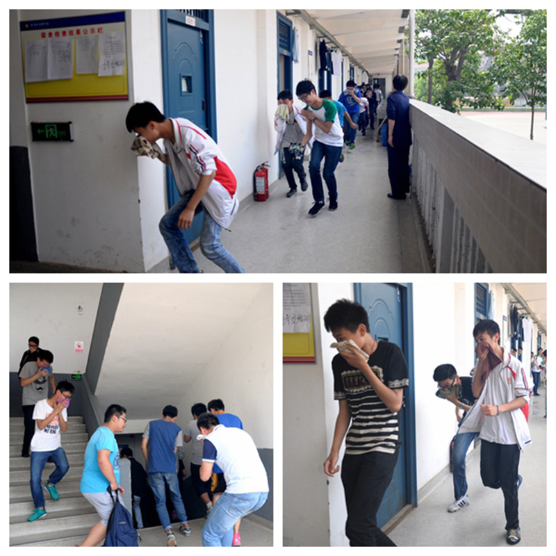 下午1:50,我校男、女生宿舍同时开始模拟火灾疏散警报,紧急疏散演习。全体学生在听到疏散信号后,在宿管员、政教处老师、安全办人员的带领下,按既定线路疏散。同学用手轻捂口鼻、用湿毛巾捂口鼻,低头弯腰靠右侧快步行走,没有奔跑冲撞,同学之间也没有推拉喧哗,表现得相当出色。同时演练中也存在不足,赵乐平副校长在学生集合地点对学生进行了总结,强调学生应该要主动的去学习简单的逃生技能,了解各种灾难下的应对知识,学习“三懂三会四个能力”以及各种场合紧急逃生的能力,面对灾难时刻保持清醒的头脑。最后将各宿舍长留下,进一步强调消防演练活动的重要性,并让各宿舍长写200-300字的活动总结。