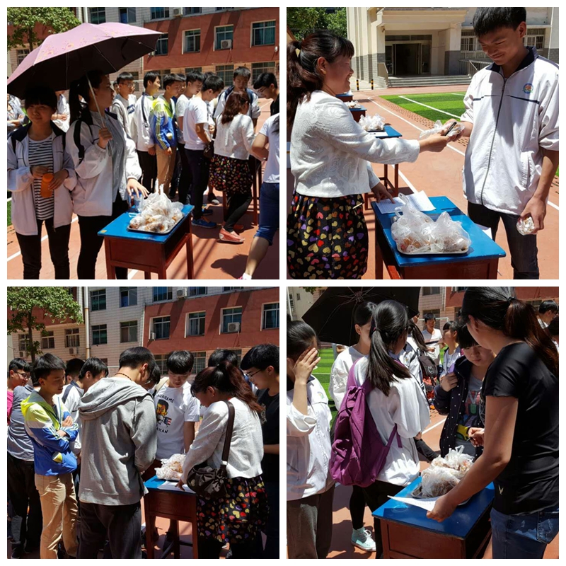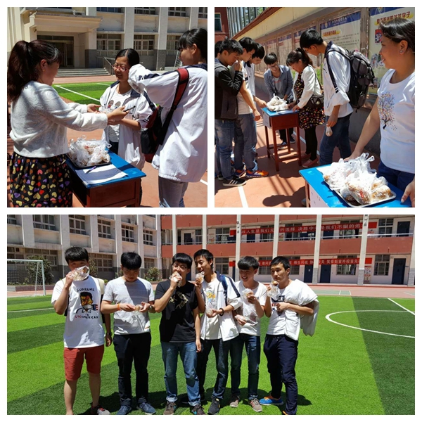 高三学生中午一放学就开始争先恐后的往宿舍门口跑,拿着自己的学生证来到赠送活动的场地,自觉地排好长队,领取李阿姨赠送的鸡腿儿。每个同学在领取鸡腿儿时,脸上都流露出灿烂的笑容,都会很客气的接过鸡腿儿,向李阿姨大声的说谢谢。高三四班的一位女同学开心地说:“我从高一开始就住校了,和李阿姨相处整整一个高中时间,李阿姨对我们寝室管理工作的认真负责态度是所有的学生都能切身感受到的。李阿姨平时待人就特别的和蔼可亲,善解人意,给我们住校生的生活给与了巨大的帮助。这一次李阿姨又在我们高三学生即将毕业离开这个学校的时候给我们免费的发放鸡腿儿,让我特别的感动,太谢谢李阿姨了。”