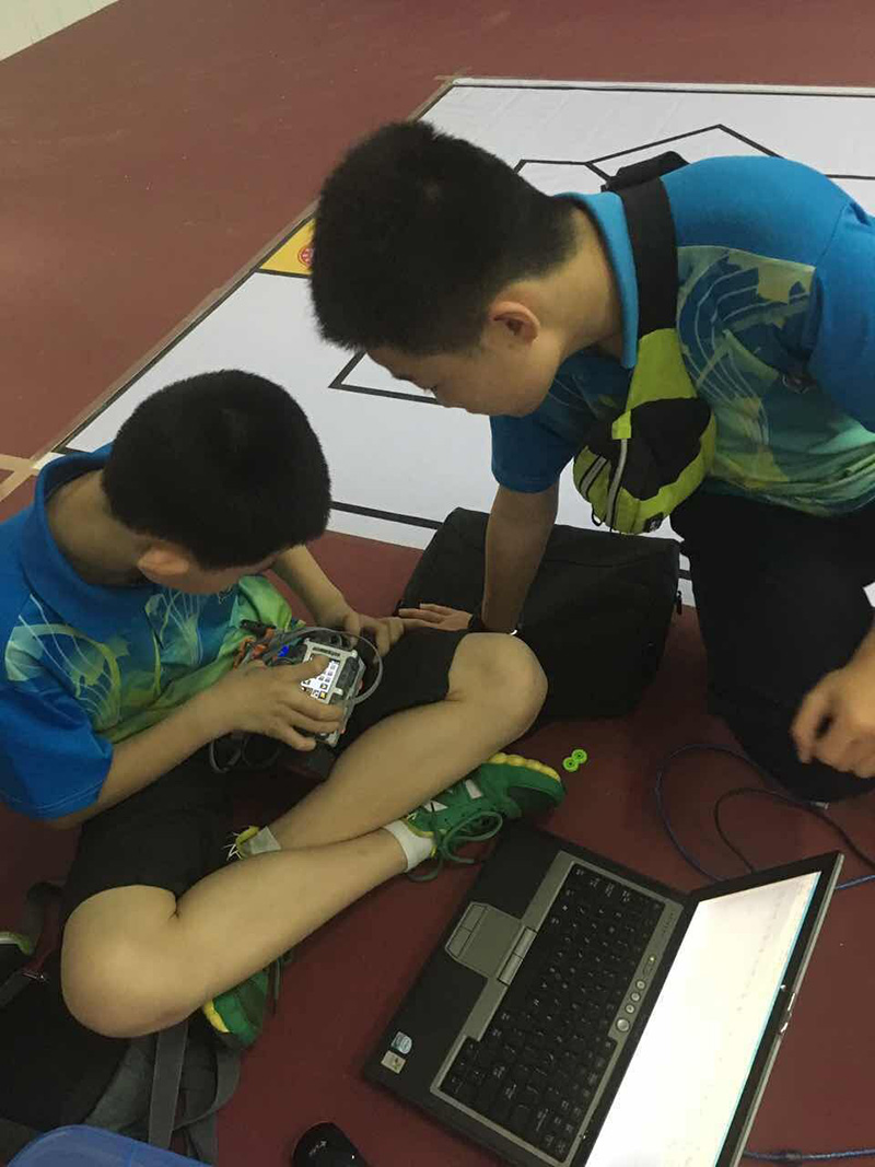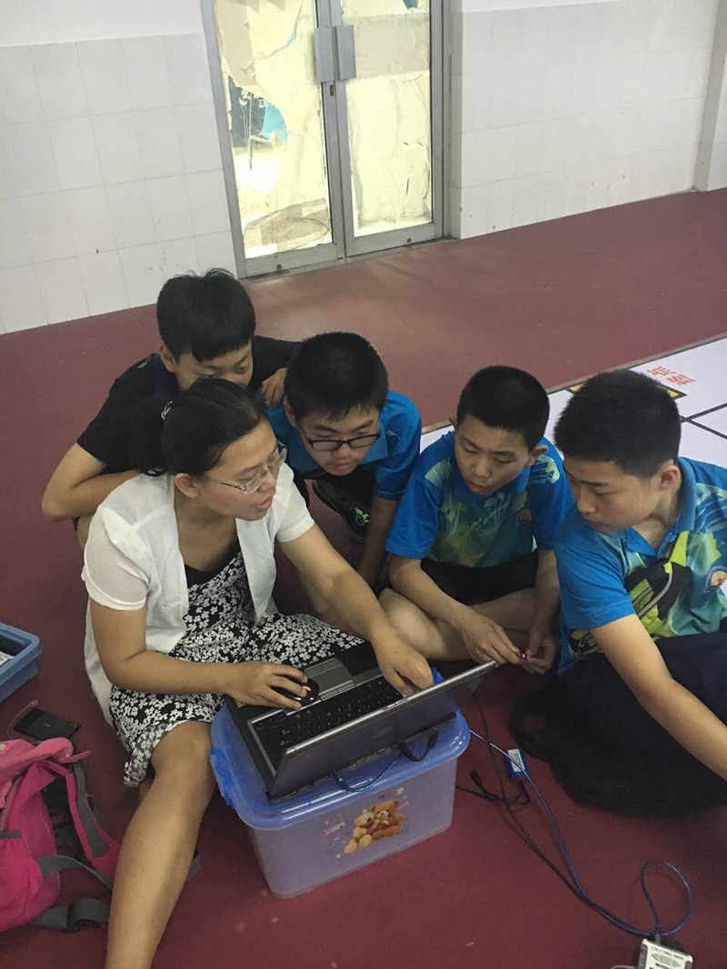 机器人搬运创意赛是要求将不同颜色的物体通过程序识别颜色,搬运到对应的位置,位置准确度越高,分数越高。我校学生买楚源、卢沛丞、邱华实首创的转仓设计可以同时运输多块物体,赢得了评委的一致好评,最后赢得了一等奖第三名。
