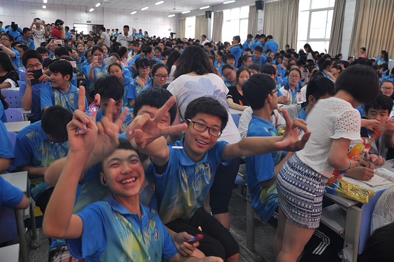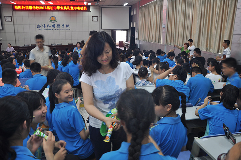 王定国副校长作了中招动员,祝福洛外学子乘时代之舟,直挂云帆,学业有成,辉煌无限!在祝福鼓励声中,年级组长郭长庆老师带领全体初三班主任给每一位学生发放了棒棒糖——相信洛外每个孩子在中考中都是棒棒哒!