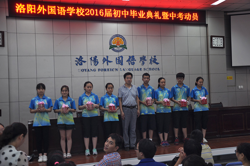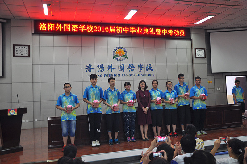 国歌铿锵,师生激昂。2016年6月23日上午九时,洛阳外国语学校2016届初中毕业典礼暨中考动员大会在国歌声中拉开帷幕。