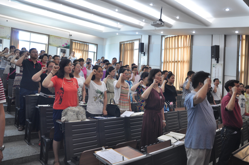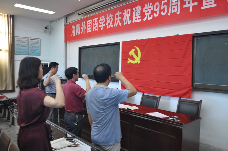 为了全面贯彻党的十八大、十八届三中、四中、五中全会,以及习近平总书记系列重要讲话精神,深入开展“两学一做”主题实践活动,回顾党的光辉历程,讴歌党的丰功伟绩,引导广大党员教师热爱党、拥护党,激励共产党员继承和发扬党的光荣传统,在全面推进素质教育、办人民满意教育工作中,更好地发挥战斗堡垒和先锋模范作用,洛阳外国语学校于6月29日下午4:30隆重举行了“庆祝建党95周年暨七一表彰大会”,全体党员重温入党誓词,严明党风党纪。