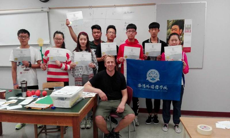 我校的学生都很积极。上课时总是第一批到教室,坐在教室最前面、最中间的两排。上课积极配合老师,积极发言,主动与同学老师交流。他们还能给其他同学当翻译。在各种活动中他们的表现得到了学校老师和校长以及列治文教育局领导的高度评价。做为他们的老师,我感到很自豪。也为我们洛阳外国语学校感到自豪和光荣。