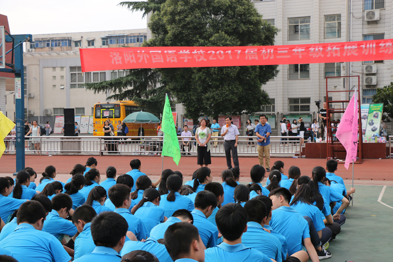 为了帮助学生调整心态,树立自信自强的必胜信念,增强学生的团队凝聚力,以高昂的斗志、饱满的精神备战2017年中考,洛阳外国语学校初三年级全体师生在学校领导的安排下,在路红副校长的带领下,于9月3日参加了为期一天的拓展训练活动。
