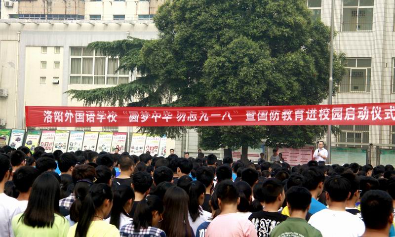 2016年9月18日,由团市委、洛阳市洛卫军品博物馆、洛阳外国语学校联合举行的“圆梦中华,勿忘国耻”国防教育进校园启动仪式在我校举行。