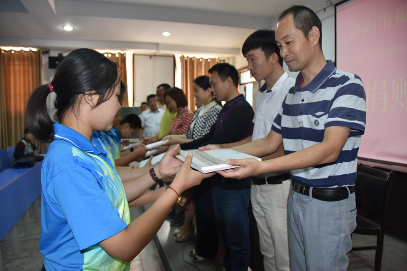 最后,硬笔书法家协会向六位学生代表捐赠字帖及硬笔大赛专用作品纸。此次捐赠仪式极大的鼓舞了我校师生学习书法的热情,并对洛阳市第二届硬笔书法大赛起到了积极的推动作用,促进了中华传统文化的传承。