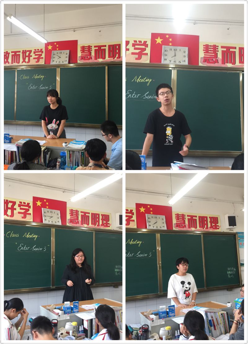 首先,有六位同学依次分享了自己理想的大学以及为之愿意做出的努力。这六位同学对高三一年的学习生活已经做了充足的规划,并且给自己竖立了明确的目标。