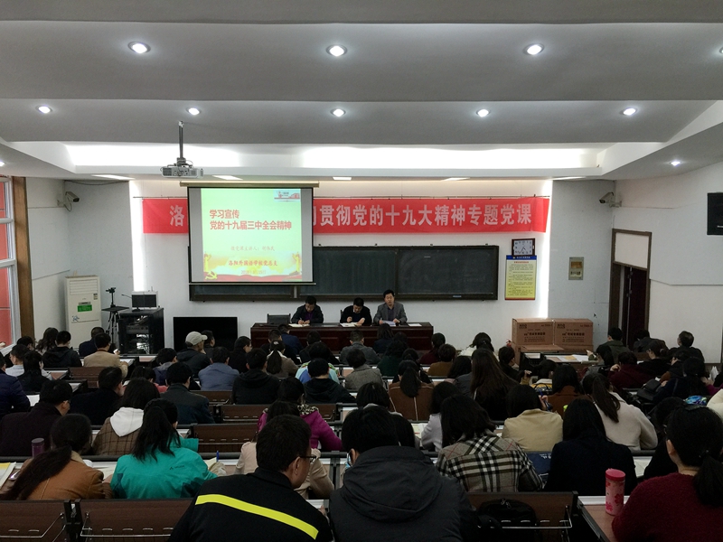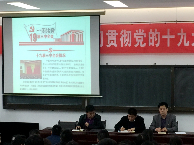 为深入贯彻落实党的十九届三中全会精神,更好的推进2018年党建工作,3月15日,洛阳外国语学校党总支召开全体党员大会,学习贯彻党的十九届三中全会精神。
