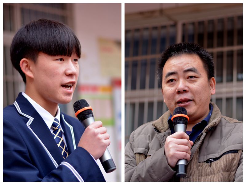 初三8班的刘毅昊作为学生代表发言,他回顾了初中三年生活的点点滴滴,鼓励同学们只争朝夕、奋力拼搏、争创佳绩。初三8班夏皓雪同学的家长代表全体家长发出心声:感谢领导、老师们的辛勤付出,同时鼓励孩子们昂扬精神,策马扬鞭,百日奋战,力争成功。
