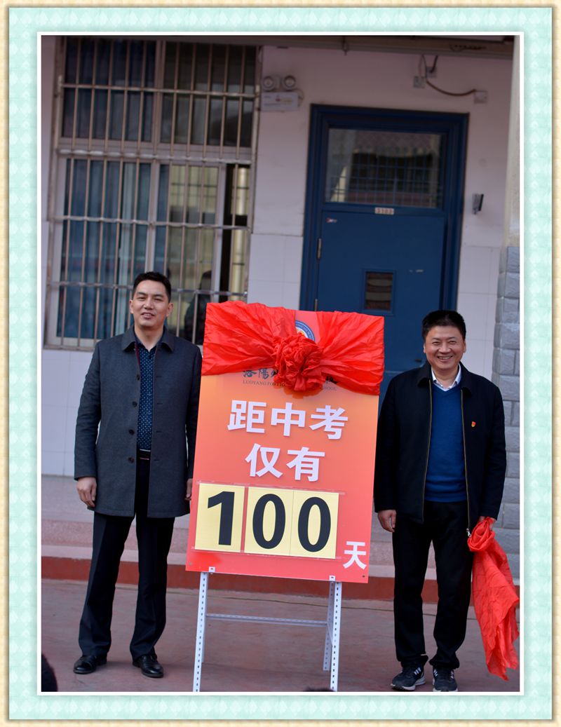 出征的战鼓已经敲起、拼搏的号角已经吹响,100天就是100次努力,100天就是100次搏击,用一百天为自己创造一个奇迹,用一百天给关爱你的人一个惊喜,让我们继续努力,决战中考,共铸辉煌!