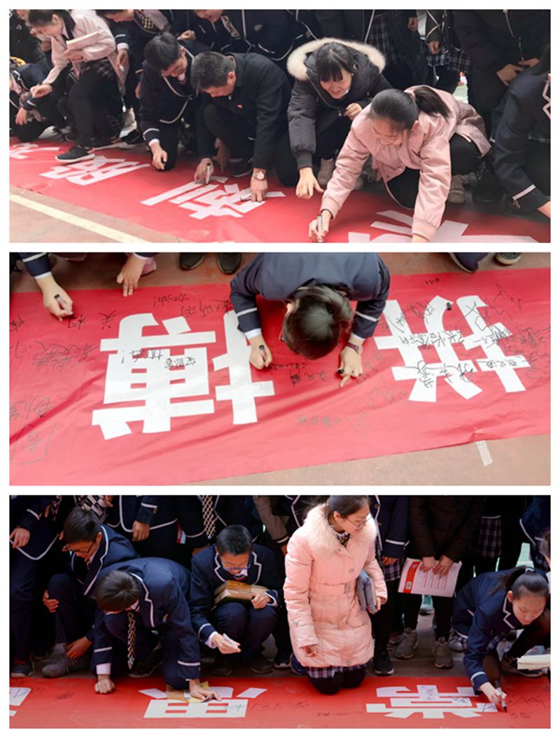 初三7班班主任郭洁琼、初三英语备课组长李晓作为教师代表发言,她们的发言饱含深情。之后初三全体老师宣誓:作为老师,我们永远是学生最为坚强、最可信赖的后盾,我们愿倾尽所有,助学生6月凯旋。