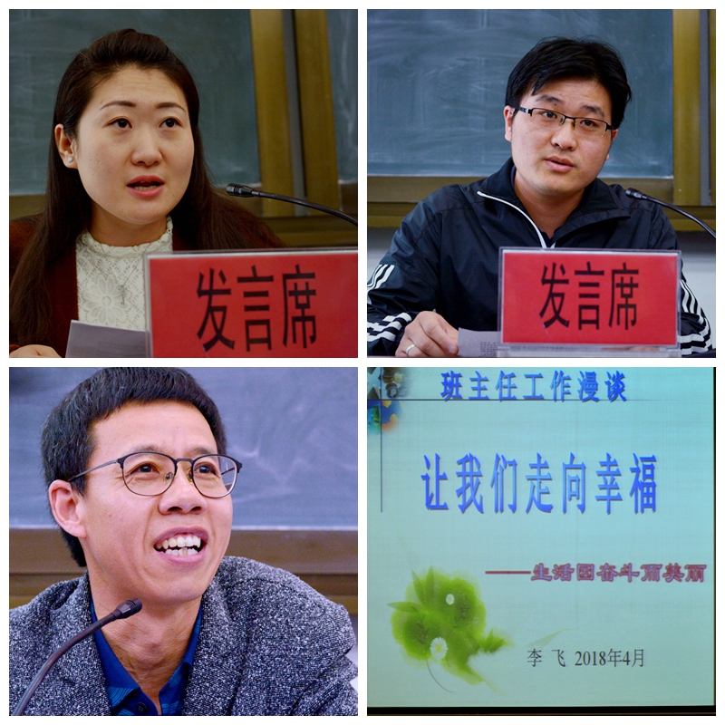接着,高中各年级优秀班主任代表分别进行工作经验交流与分享,各位班主任根据自己班级的情况和工作经验,通过一个个真实、鲜活的典型案例,展现了自己带班的理念和风格。高一十班班主任郭贤江老师倡导家校结合、言传身教;高二四班班主任王文婧老师主张智慧管理、爱心教育;高三三班班主任于从威力推细节铸造、矩阵化管理;高一四班班主任李飞老师,作为我校资深学科带头人,有着二十多年的班主任管理经验,他诠释了用心经营班级,打造幸福班集体的理念;班主任们的智慧与热情博得了在场老师和领导们的一致好评与认可,全场掌声雷动。