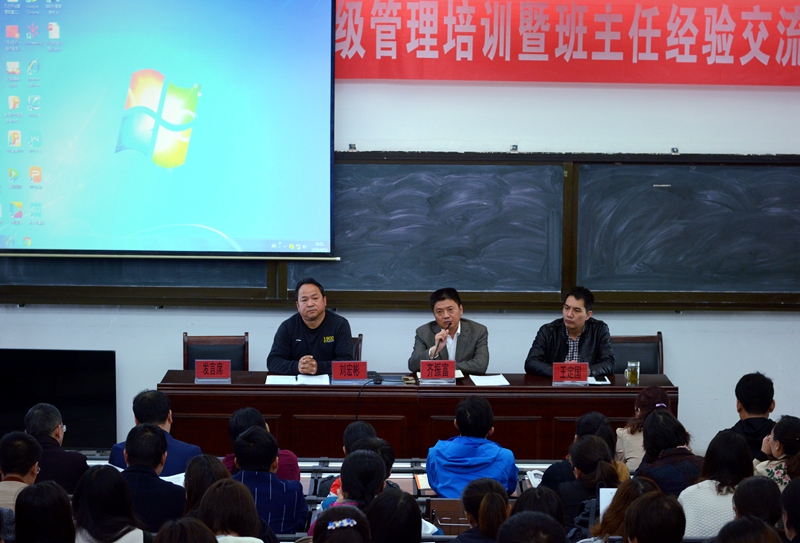 班主任工作是学校教育教学工作的灵魂,是学校德育工作的重中之重。为进一步强化班级管理,提高班主任的工作水平,促进班主任与各任课老师之间的交流与合作,让班主任的先进经验更好地发挥作用,助力打造最严洛外,2018年4月12日下午,洛阳外国语学校高中部召开了“班级管理培训暨班主任经验交流会”。我校党总支书记、校长齐振富,副校长刘宏彬、王定国以及高中部全体班主任和各任课老师参加了会议,大会由刘宏彬副校长主持。