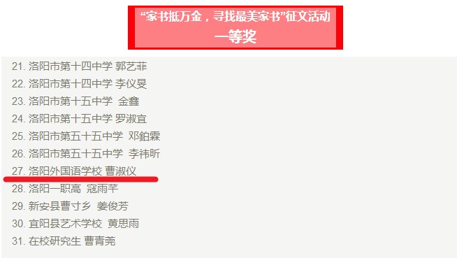 ——洛外荣获洛阳市寻找最美家书活动优秀组织奖