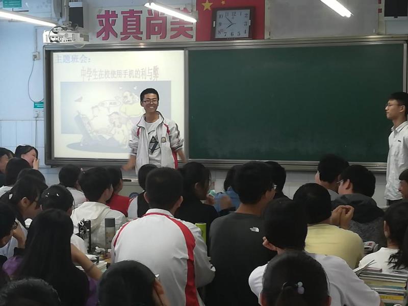 2018年5月5日早,伴着同学们的期待,洛阳外国语学校高一年级“论在校使用手机的利与弊”辩论赛在高一八班教室举行。