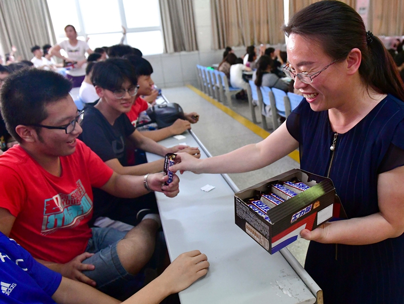 校长也为学生们送上深情的嘱托和祝福。高三老师们不仅给学生送上真挚的祝福,还给每个学生发放了士力架,让他们能量满满,走进考场。