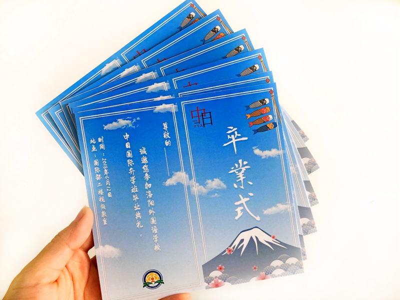为了这次毕业仪式,中日班的同学们从上周就开始准备,不仅发挥集体的智慧设计了毕业典礼邀请函,更是为中日班设计了自己的logo,寓意中日两国友好携手,友谊长存,也寓意洛阳外国语学校中日国际升学班红红火火!