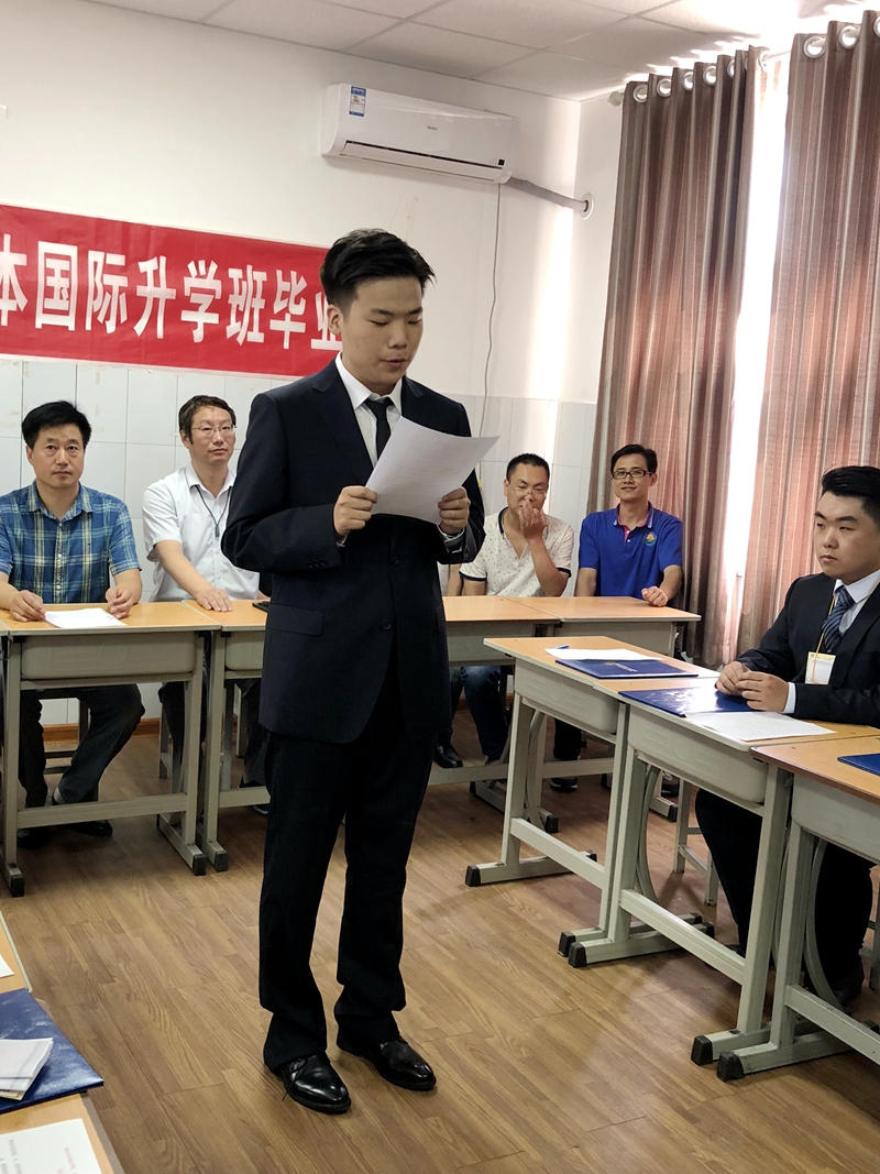 接着我校魏成民副校长致辞。在致辞中,魏校长肯定了各位老师对中日班学子们的辛苦付出,同时对即将踏出国门,赴日学习的孩子们提出了殷切的希望和诚挚的祝愿。外事办孙金花主任也对孩子们这一年的努力表达了欣慰之情,对毕业学子们提出了美好的祝愿。