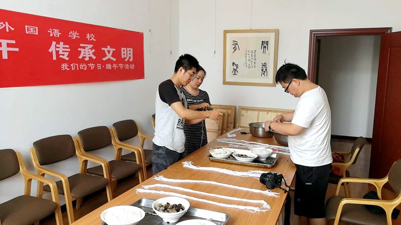端午将至,粽叶飘香。2018年6月15日,洛阳外国语学校阅览室内热闹非凡。一场以“品味端午,传承文明”为主题的端午节活动在这里举行,我校青年教师齐动手,与食堂员工们一道品味传统习俗,迎接端午佳节的到来。