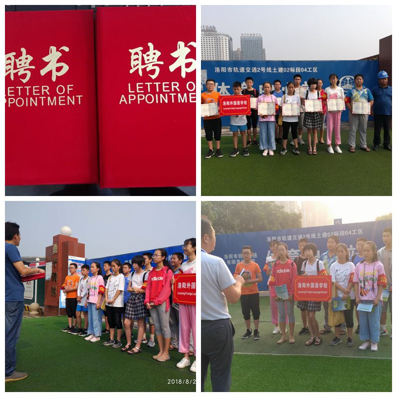 参观施工现场后,参与活动的师生们在地铁2号线体育中心站大门口集合讲评,班主任苑新国老师对参与活动的学生提出表扬,并同市控尘办、中铁一局领导和学生家长代表一起为参与活动的学生们发放了洛阳市控尘办颁发的“校园控尘志愿者”聘书。要求学生们把“校园控尘志愿者”作为一项荣誉倍加珍惜,作为一项责任扛在肩上,作为一项义务多多参与,从我做起,从现在做起,从点滴小事做起,同全市战斗在“蓝天保卫战”一线的叔叔阿姨们一起,守护好大洛阳的一片蓝天。