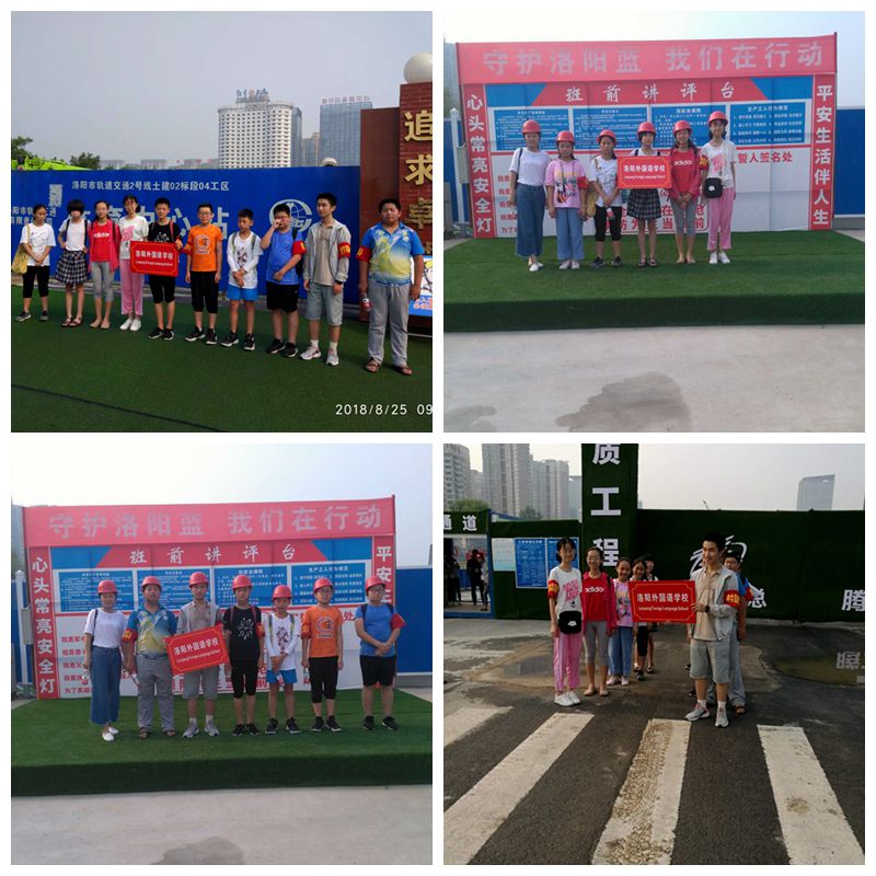 在中铁一局施工的洛阳市轨道交通2号线体育中心站施工现场,中铁一局现场负责人带领师生们参观施工现场,介绍未来大洛阳城市轨道交通的美好愿景和体育中心站的基本情况,洛阳市控尘办宣传处长曹淼亮在施工现场给师生介绍建筑工地扬尘污染防治“七个百分之百”要求,指导参加活动的洛外学生们在现场对裸露黄土和积尘路面覆盖防尘网。中铁一局项目经理冯永涛给参与活动的师生们介绍了地铁工地扬尘污染防治的要求和标准,勉励学生们具备环保意识,以实际行动贯彻理念,守护洛阳的碧水蓝天。