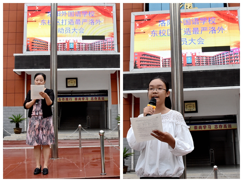 李笑平老师、金雨洋同学分别代表全体师生在大会上发言,表达了东校区师生对最严洛外的期盼与心声。