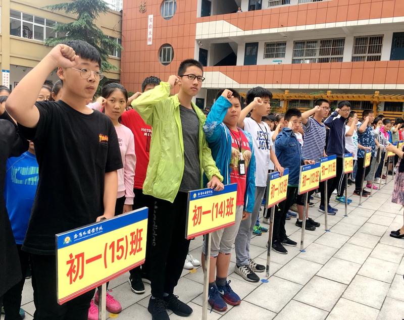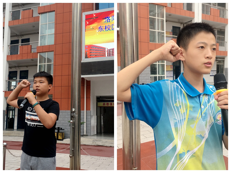 最后,裴郁桐和穆昊同学分别带领初一年级和初二年级同学现场进行宣誓,作出庄重承诺。掷地有声,铿锵有力的誓言展示了同学们维护学校形象,打造最严洛外,从我做起的决心和信心。