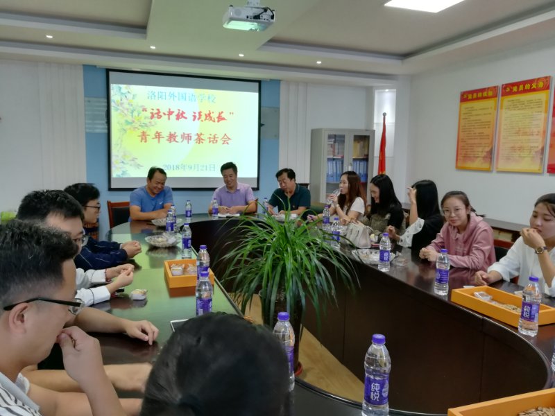 为庆祝中秋佳节,表达学校对新入职教师的关心与爱护,2018年9月21日,洛阳外国语学校为青年教师们举办了"话中秋,谈成长"主题茶话会。