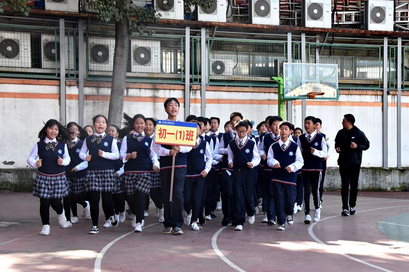 开幕式结束后,跑操比赛精彩亮相。经过两周的赛前训练,同学们的跑步水平有了质的提升。每组四支队伍同场竞技,行进间宛如花瓣绽放,给人以美的享受。各班整齐的队列,矫健的步伐,响亮的口号,高昂的斗志彰显出洛外学子纪律严明、奋发向上、勇争第一的精神风貌,赢得了到校家长和老师们的阵阵掌声。