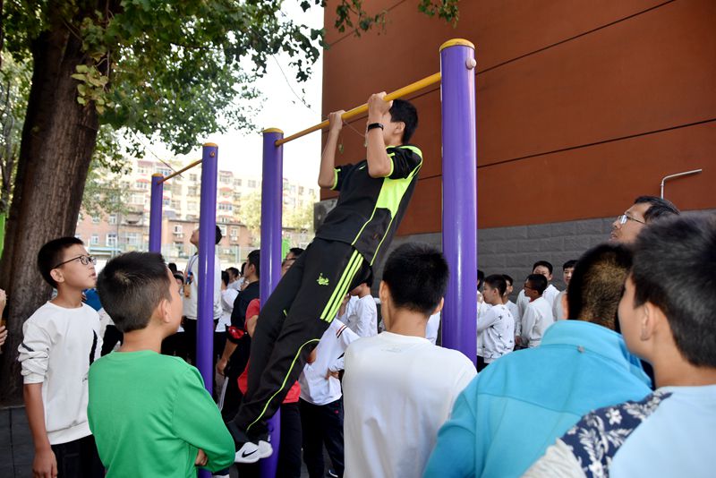 本次达标运动会包括8001000跑,肺活量、身高体重测试,坐位体前屈、仰卧起坐、引体向上等测试项目,头绪多,时间紧,任务重。东校区政教牵头周密部署,细化管理,科学调控,教务处、体育组、年级组通力合作,克服了学生多、场地小、器材数量有限等困难,保证了达标测试有序高效进行。