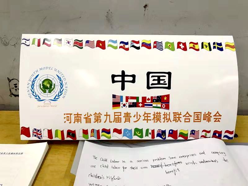 为参加此次峰会,我校模联社团的学生认真练习,准备了大量资料。他们需要了解自己所代表国家的面积、人口、地图、气候、主要农作物、经济支柱、国家象征、历史、地理、政治、经济等基本信息,制作所代表国的展板,写出自己所代表国家的议题、立场文件。很多英文需要去翻阅字典,对照了解,朗读甚至背诵下来,这对学生来说是一项极大的挑战。