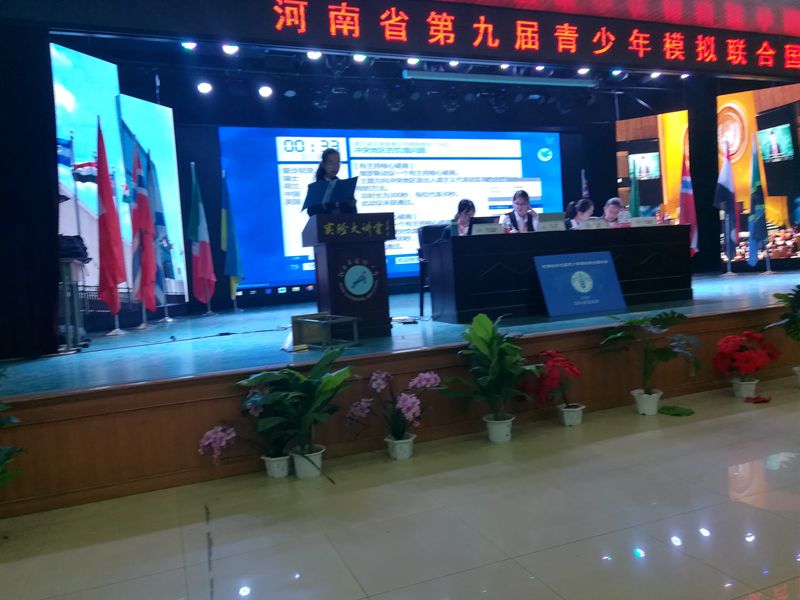 20181020-21日,河南省第九届模拟联合国青少年峰会在河南省实验中学召开。洛阳外国语学校模联社团的20名学生在袁峰主任和陈凤英、汤晓晓老师的带领下,分别代表4个不同的国家参与此次峰会。