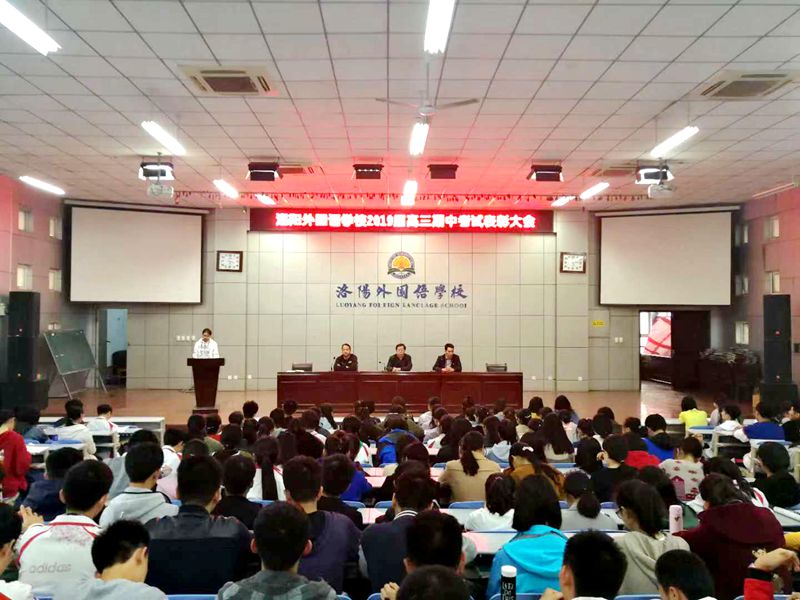 为鼓舞高三士气,表彰优秀学生,洛阳外国语学校于2018年11月1日举行了“高三年级期中考试成绩分析及优秀学生表彰会”。会议由刘宏彬副校长主持,项伟副校长、王定国副校长,王建国主任参与了本次活动。