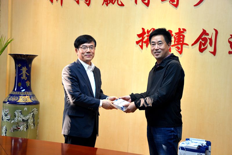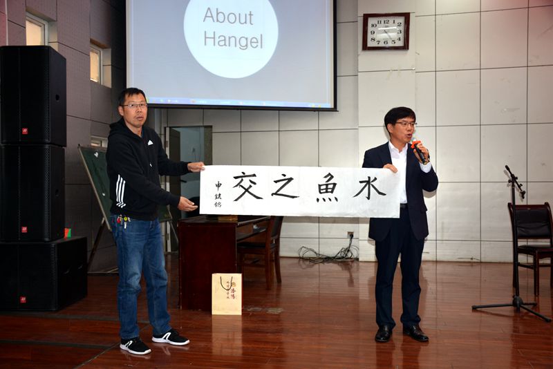 在会议室稍事休息,双方领导互相介绍学校情况及两校的友谊。凡在韩国国际学校读书的学生除韩语之外,要学习中文和英语。他们对中国文化很感兴趣,有的学生中文很好。在深度沟通交流之后,双方领导互赠礼品。