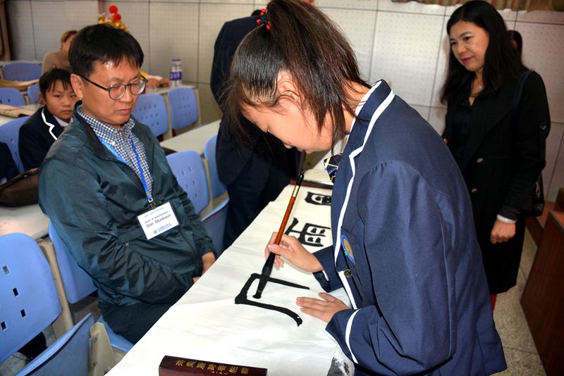 韩国国际学校校长为我校题字留念,表达美好祝愿。