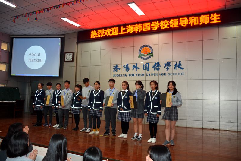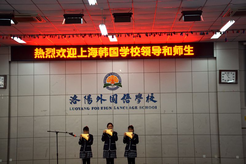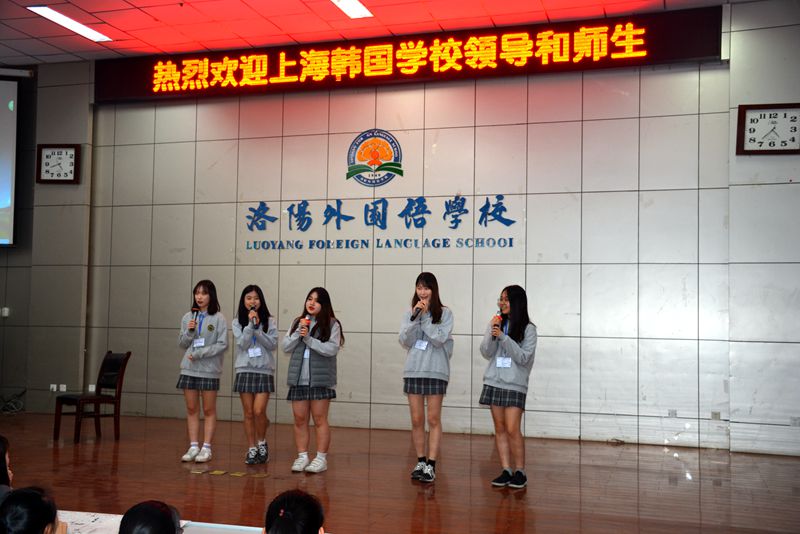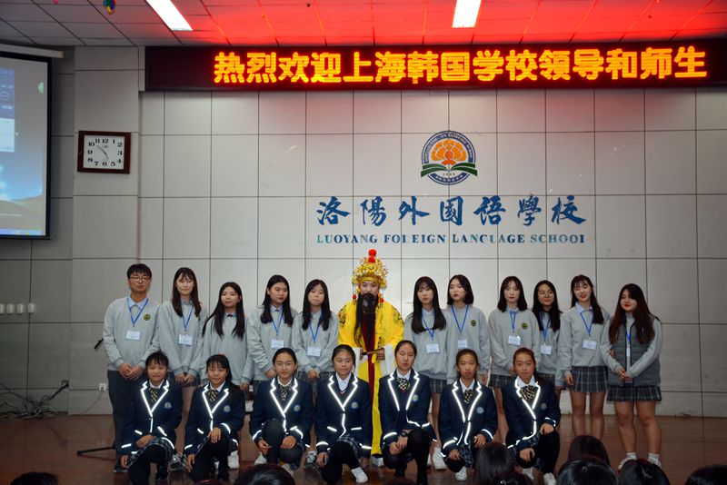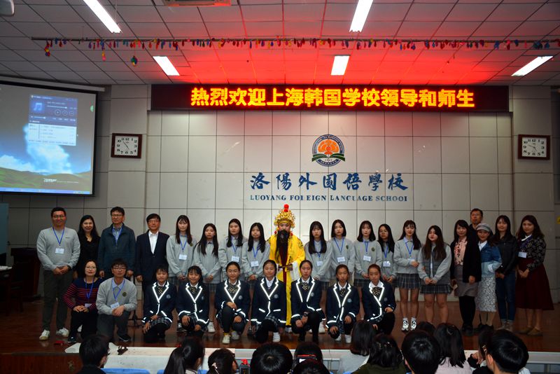 2018年11月1日,来自上海韩国国际学校的师生一行33人在校长的带领下来到洛阳外国语学校,进行一年一度的访学活动。魏成民副校长和国际部孙金花主任代表我校对访问团给予热烈的欢迎。